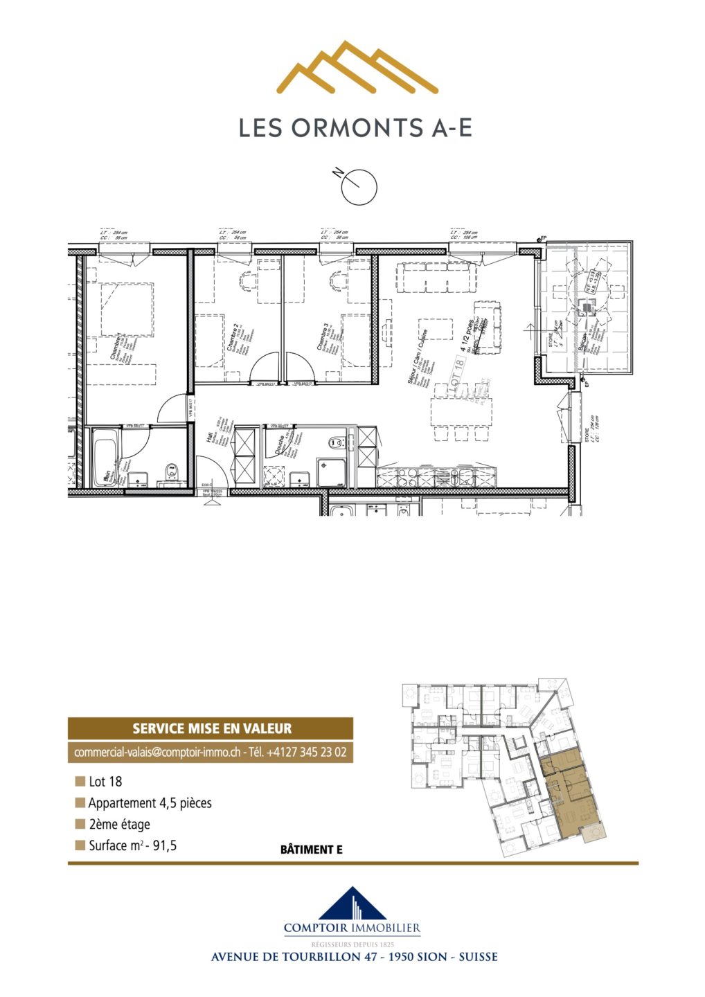| 18 | 2ème | 4.5 | 91.50 m2 | CHF 1'930 | |||||||