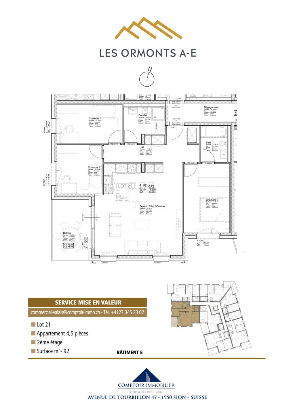 | 21 | 2ème | 4.5 | 92.00 m2 | CHF 1'930 | |||||||