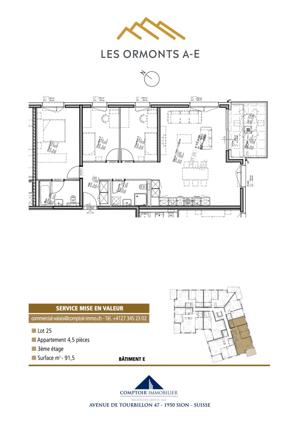 | 25 | 3ème | 4.5 | 91.50 m2 | CHF 1'980 | |||||||