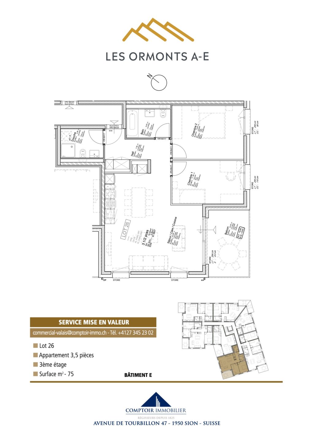 | 26 | 3ème | 3.5 | 75.00 m2 | CHF 1'635 | |||||||