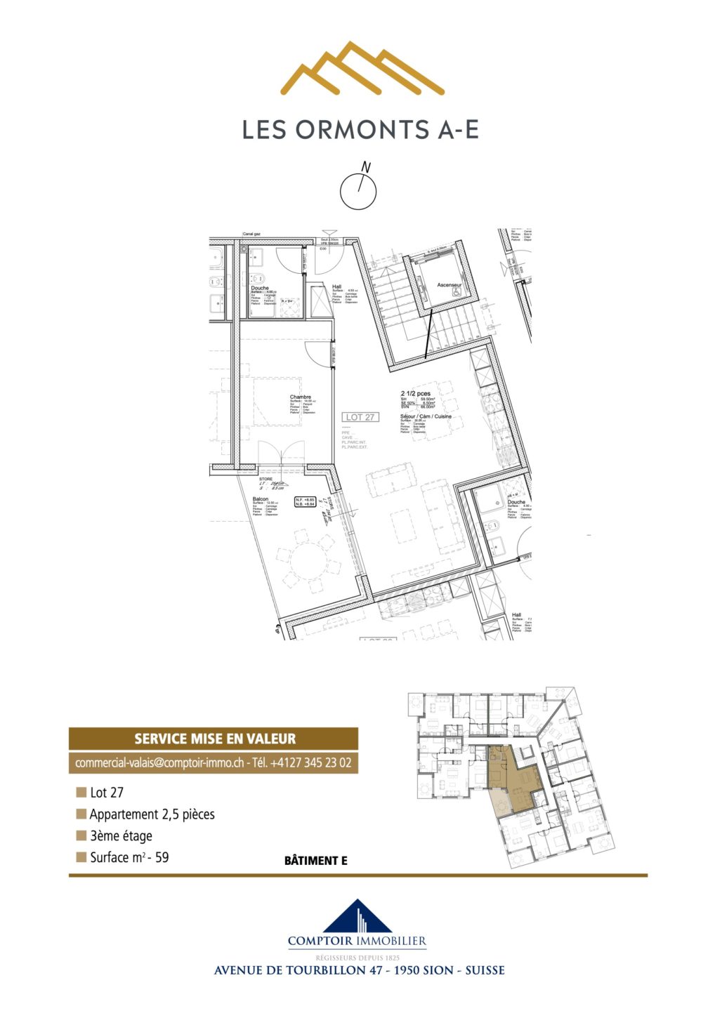 | 27 | 3ème | 2.5 | 59.00 m2 | CHF 1'405 | |||||||
