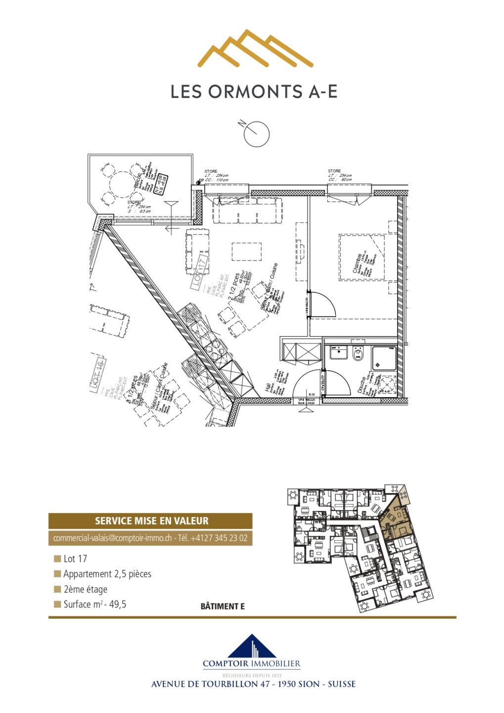 | 17 | 2ème | 2.5 | 49.50 m2 | CHF 1'355 | |||||||